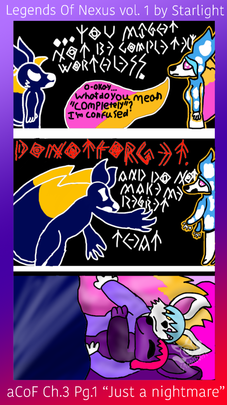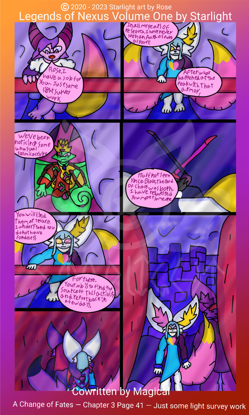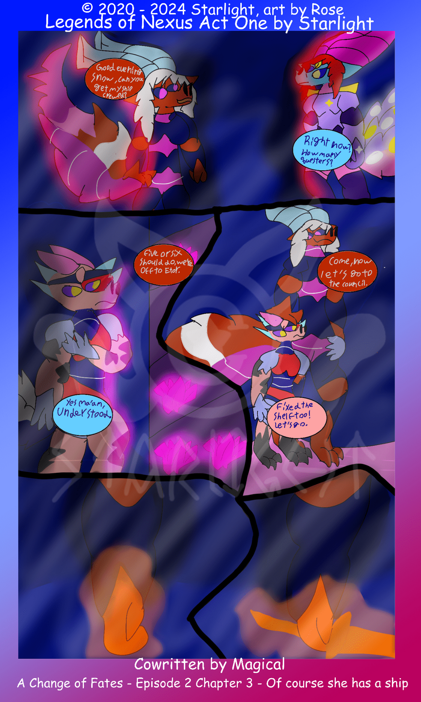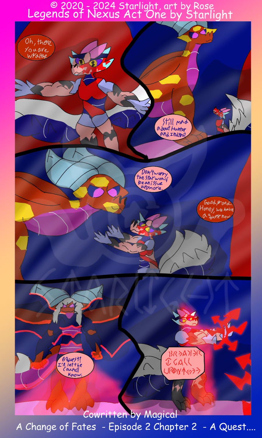 Legends of Nexus is a wip comic series by Rose under the name of Starlight.Please do not reupload or repost these pages in any shape or form.