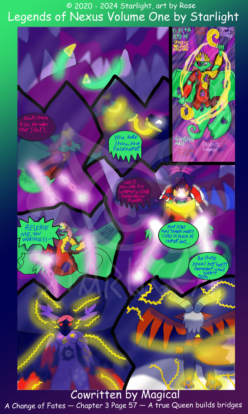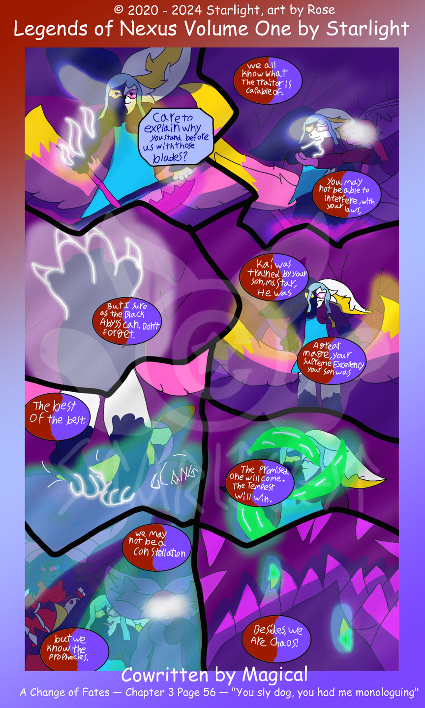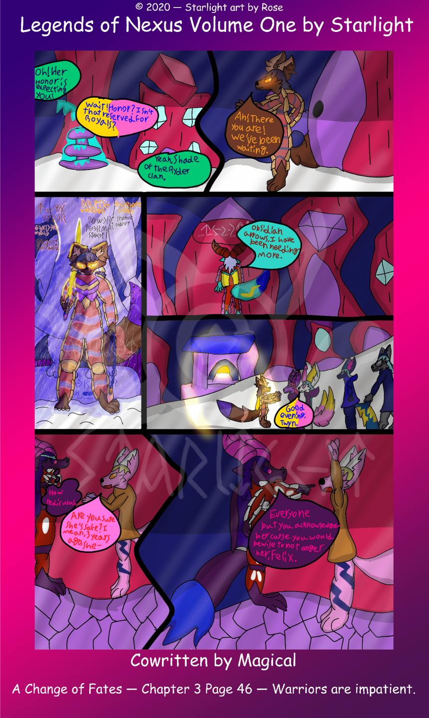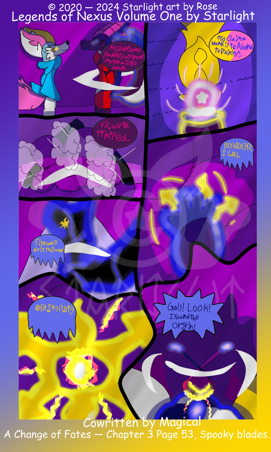 Legends of Nexus is a wip comic series by Rose under the name of Starlight.Please do not reupload or repost these pages in any shape or form.